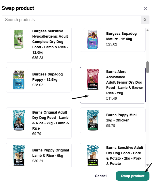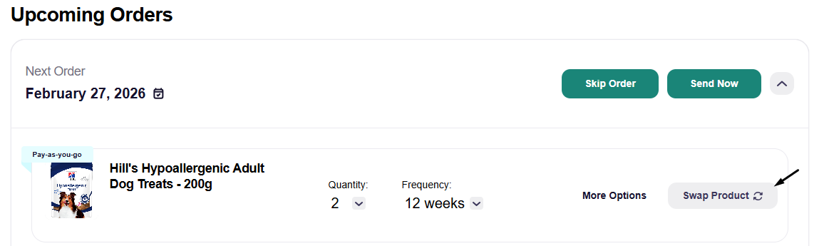 Home Subscriptions Subscriptions How can I swap a product in my subscription? Simply click on the "My Account" icon located at the top right of the page. Select "My Subscriptions" Then click on "My Subscriptions" Click on "Swap Product" Select your new product and click on "Swap product"
